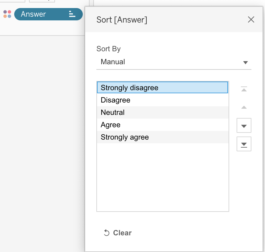 Click “Answer” field and “Sort” menu. Check “Manually” in “Sort by” menu and change the order as below