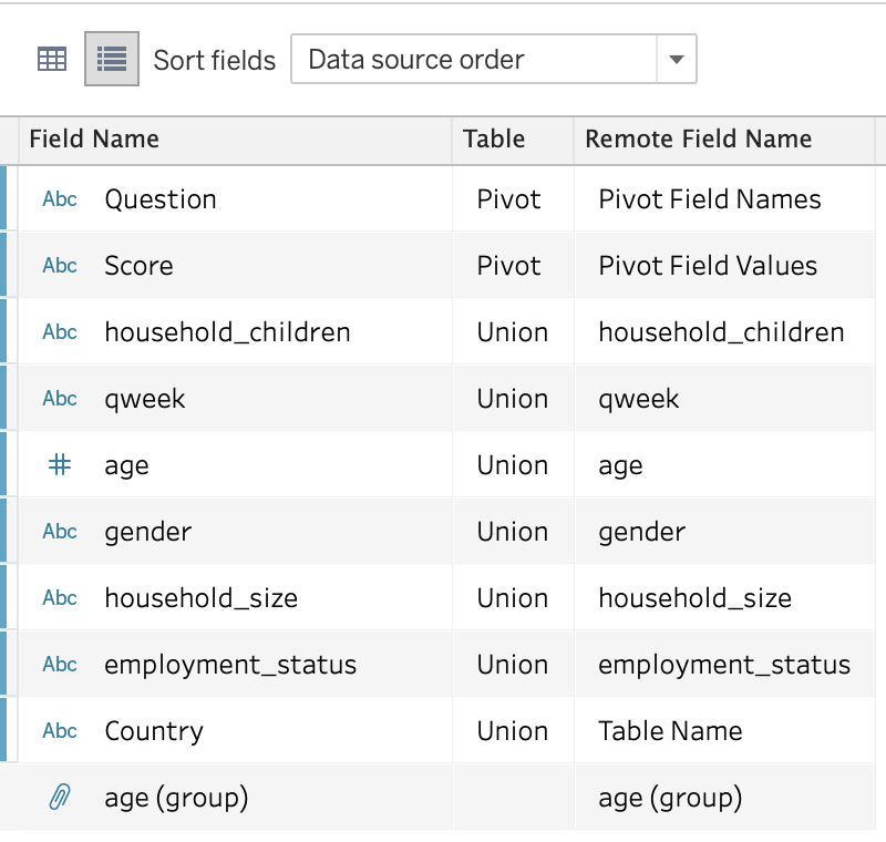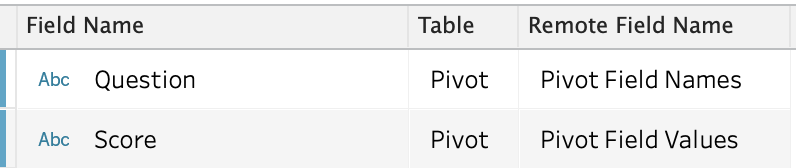 Then change pivoted fields’ name to “Question” and “Score”.