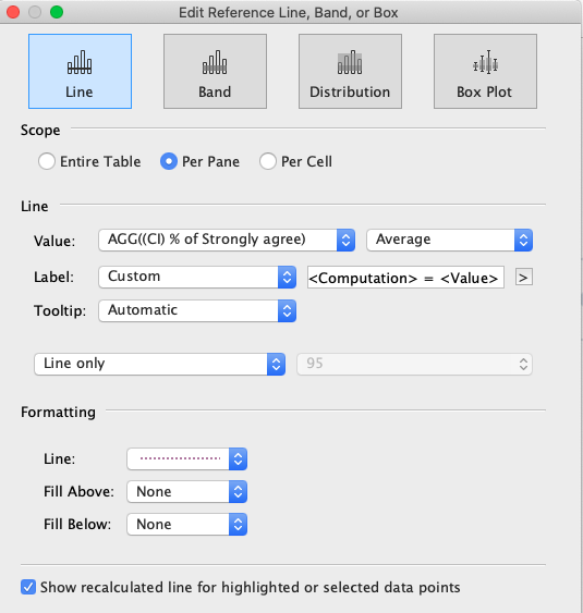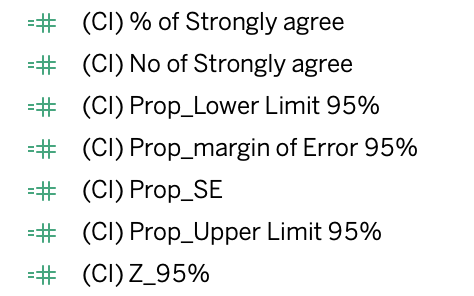 First of all, we need to create 7 calculated field to visualise confidence level. The formula for the fields are below.