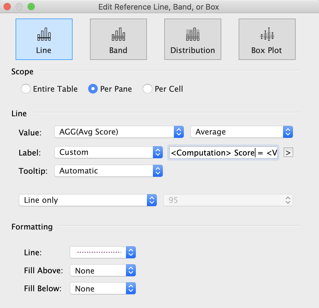 Add reference to show “Average line”. Type label “ Score = ”