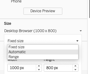 Click Dashboard icon and change Size to “Automatic”