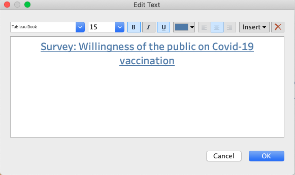 This chart is a visualisation for a question “If a Covid-19 vaccine were made available to me this week, I would definitely get it”. However, the title of this only show the answer of the question. We need to show proper title to clarify the result.