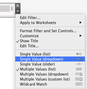 Click triangle and check “Single Value (dropdown)”