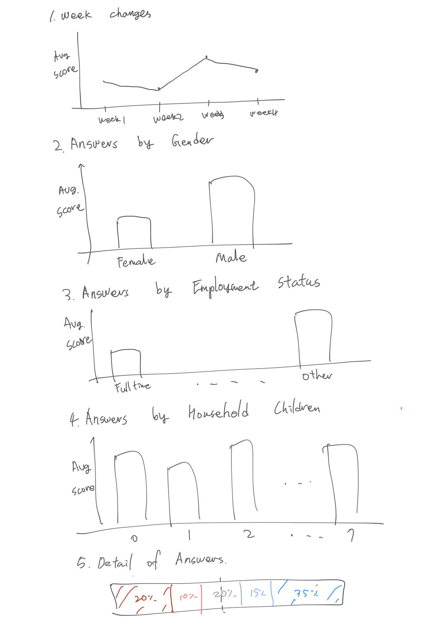 By showing the detailed answers by different sub-categories, users can understand easily which factors were affected to the results.
