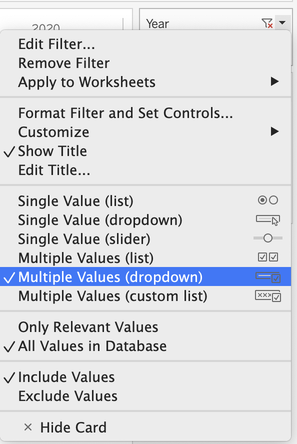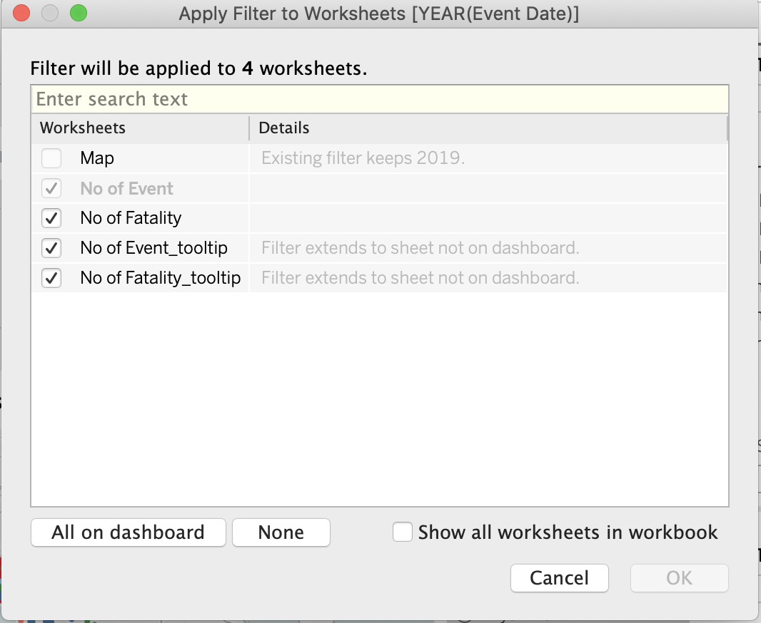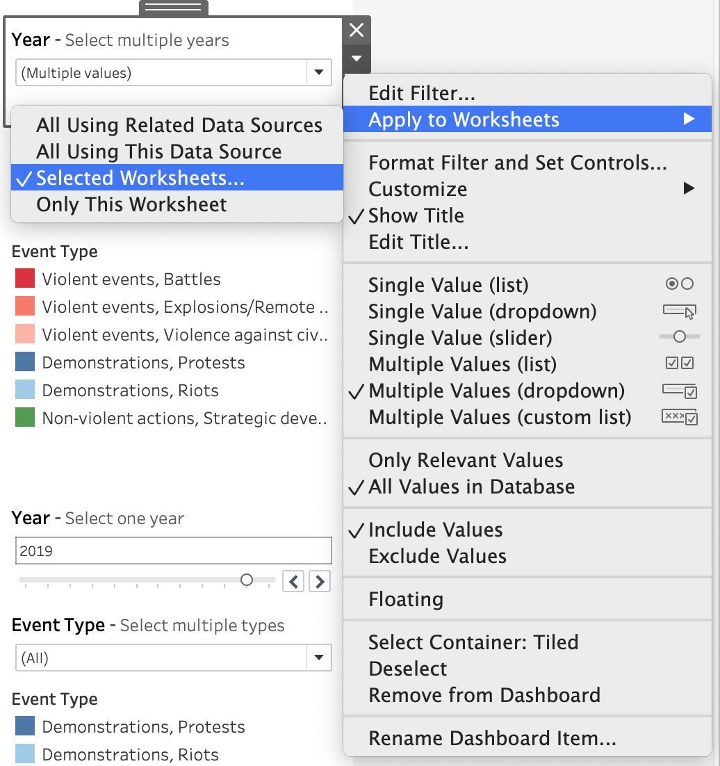 Click “More option” in “Year” filter and go to “Selected Worksheets…”