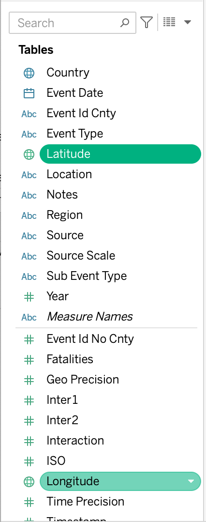 Move up “Latitude” and “Longitude” filed from Measure pannel to Attribute pannel.