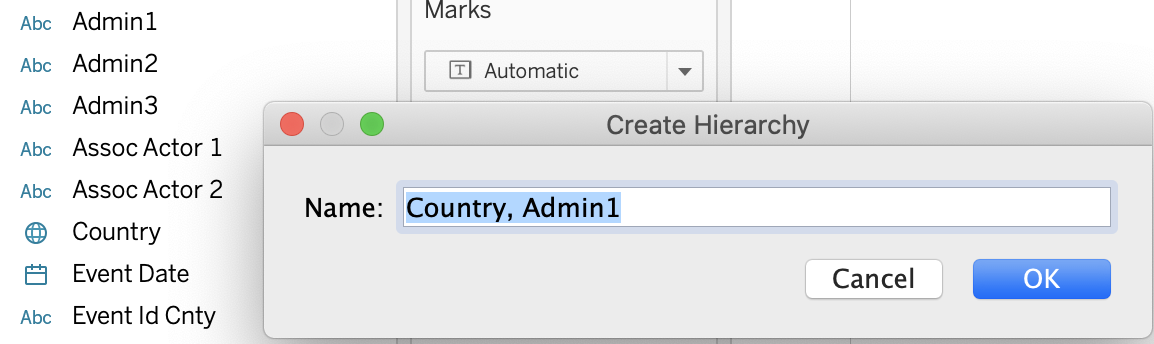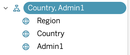 Create a Hierachy “Region”, “Country” and “Adminn1” field for geospatial analysis.