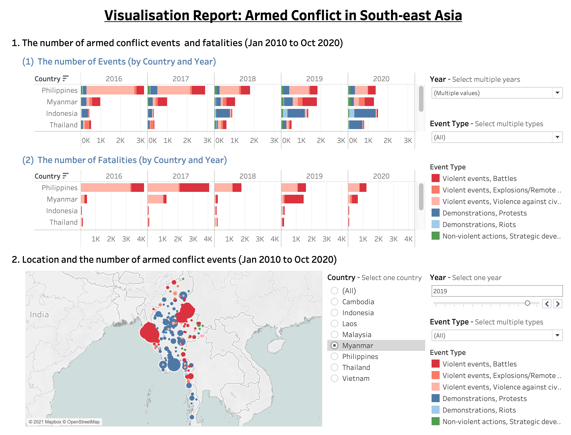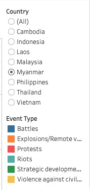 4. Do the same action as above for “Event Type” filter in “1. The number of armed conflict events and fatalities (Jan 2010 to Oct 2020)”