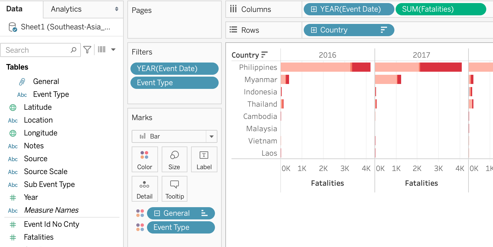 Duplicate “No of Event” sheet we created above, and rename “No of Fatality”