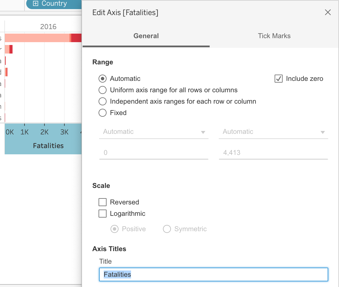 Drag and drop “Fatalities” measures onto “CNT(Sheet1)” to change the target value.