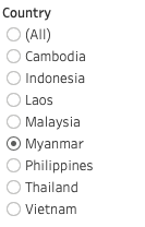 Radio button for selection of country: In order to compare data by countries, legend(filter) should be changed from radio button to check box.