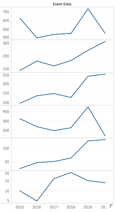 “Event Date”: As seen below, the label of x-axis, “Event Date”, does not properly represent meaning of values of x-axis. The x-axis value only represents the year and there is no information about the sepecific date.